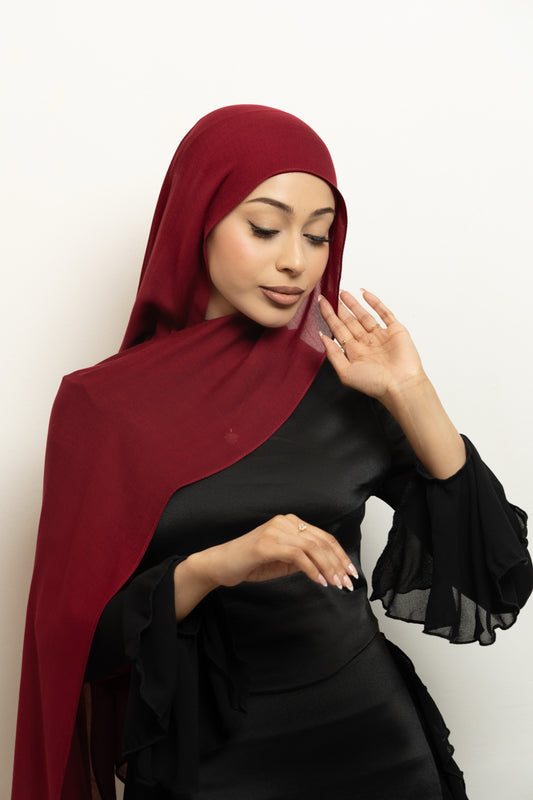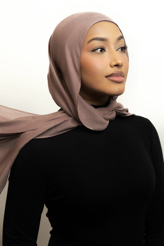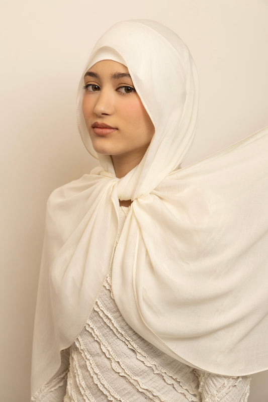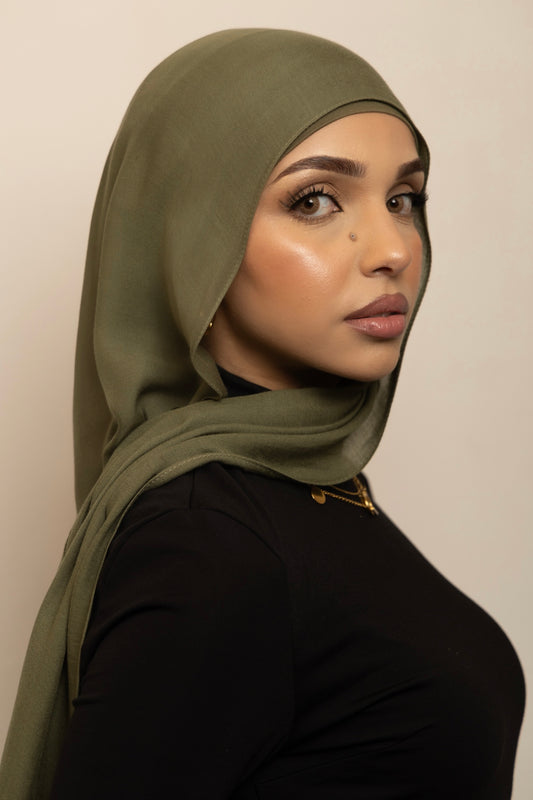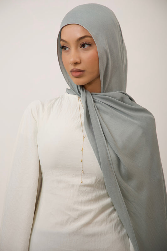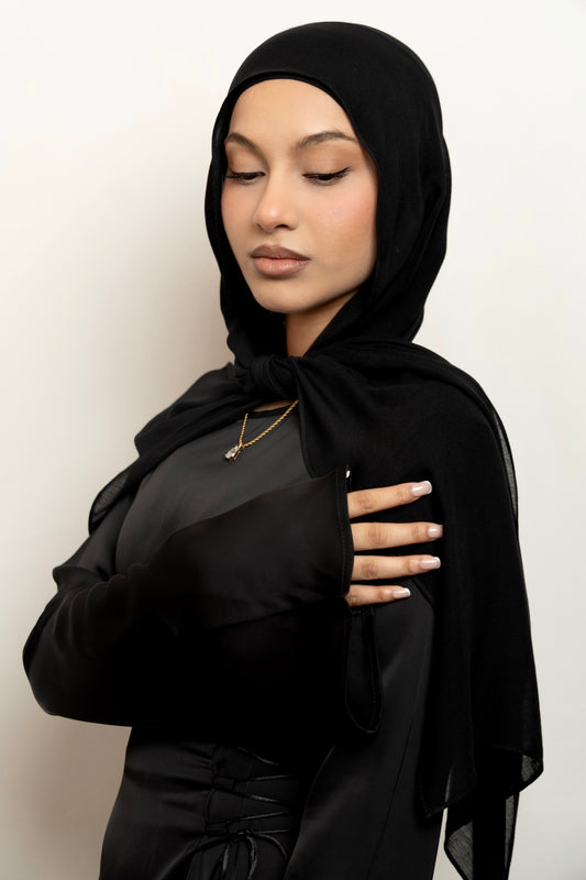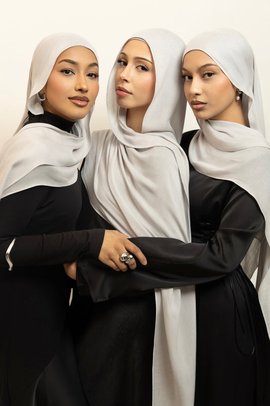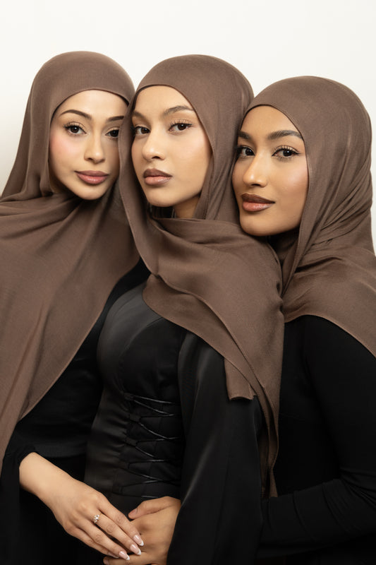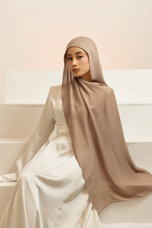 Premium modal is distinguished by its smooth and airy lightness. Its breathable and flowing drape enables the hijab to gracefully envelop the face and shoulders. The single stitch edge ensures it sits perfectly in place, enhancing your overall look.